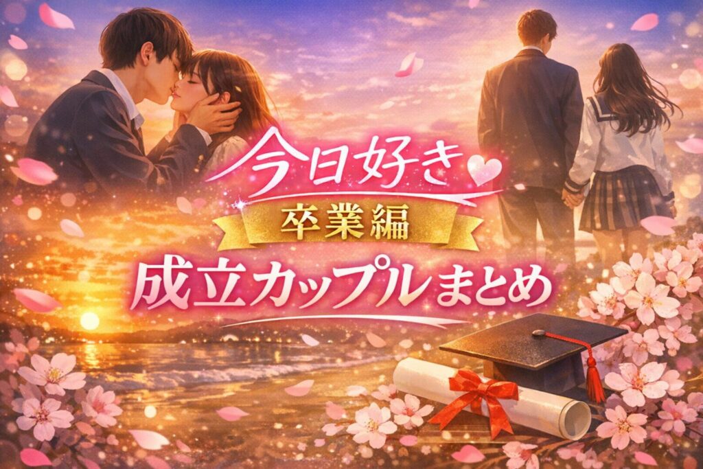 【今日好き卒業編のカップル成立まとめ】「今日、好きになりました。卒業編」で成立したカップルの結果を一覧でまとめました。卒業編はシリーズの中でも特に感動回が多く、告白シーンやその後の展開が話題となっています。▶ 今日好き卒業編はどこで見れる... -