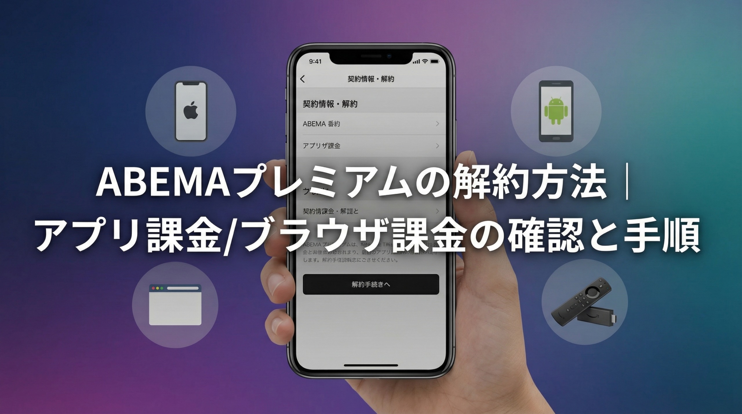 また、ABEMAプレミアムの解約方法で迷った場合はABEMAプレミアムの解約方法|アプリ課金/ブラウザ課金の確認と手順【2026年2月最新】を参考にしてください。アプリ経由とブラウザ経由で解約手順が異なるため、自分の登録経路に合った方法を確認しておくと安心です。