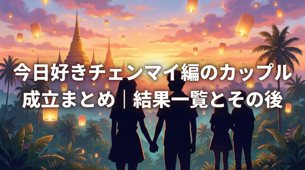 「今日、好きになりました。チェンマイ編」は、2025年11月17日から12月15日までABEMAで独占配信された恋愛リアリティーショーです。タイ・チェンマイを舞台に、継続メンバー5人+新規メンバー5人の男女10人が2泊3日の恋の修学旅行に挑みました。この記事で... -