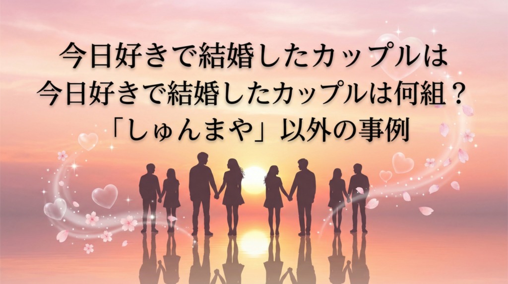 「今日好きで結婚したカップルって、しゅんまや以外にもいるの?」と気になっている方へ。結論から言うと、番組内カップルとしての結婚はしゅんまやの1組のみですが、番組出演者の中で結婚した人は少なくとも5名います。2026年2月最新の情報をもとに、すべ... -
