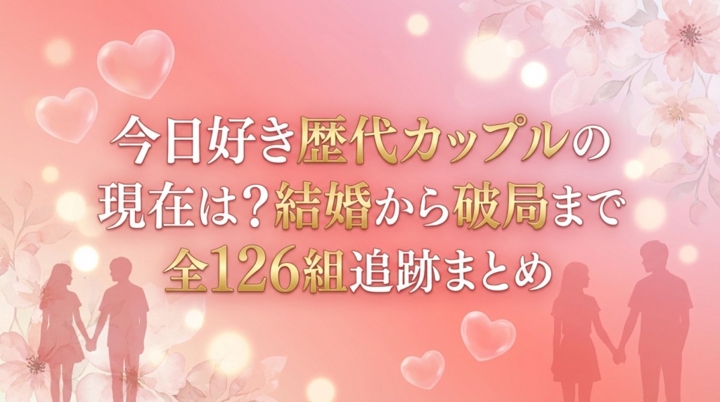 「今日、好きになりました。」(通称:今日好き)で成立した歴代カップルは、2026年2月時点で累計126組にのぼります。そのうち現在も交際が続いているのは約11組で、結婚・出産に至ったカップルも存在します。この記事では、歴代全カップルの「その後」を... -