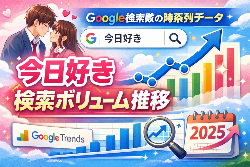 「今日、好きになりました。」(通称:今日好き)のGoogle検索ボリュームは、新シーズンの放送開始直後に毎回急上昇し、2025年には年間を通じて過去最高水準を記録しました。本記事では、今日好きの検索数がどのように推移してきたのか、その背景にある番... -