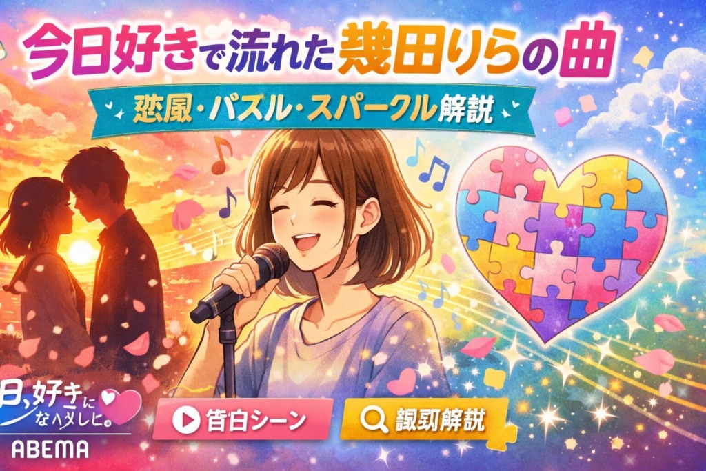 【今日好きで流れた幾田りらの曲|恋風・パズル・スパークル解説】「今日、好きになりました。」を観ていて、告白シーンや切ない場面で流れる曲が気になった方も多いのではないでしょうか。あの心に刺さる楽曲は、すべて幾田りら(YOASOBIのikura)が「今... -