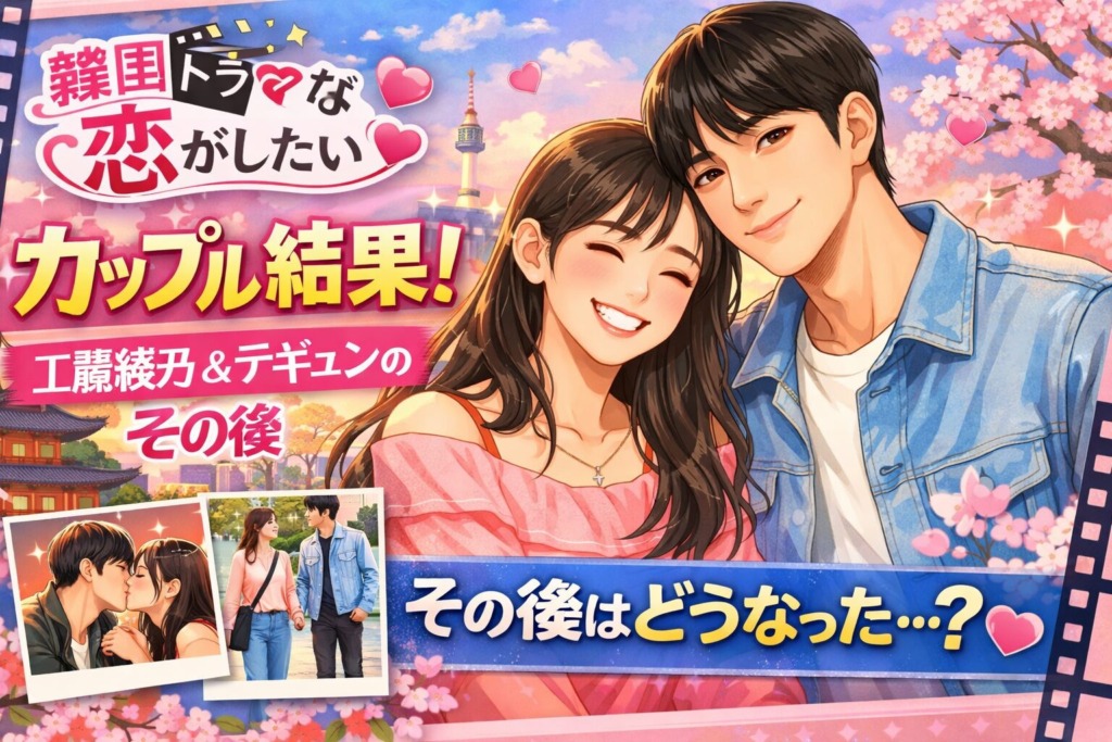 「韓国ドラマな恋がしたい」で見事カップル成立した工藤綾乃さんとイ・テギュンさん。最終回での感動的な告白シーンは多くの視聴者の心を掴みました。この記事では、2人のカップル成立の経緯から番組終了後のその後の関係、さらに2026年現在の最新情報まで... -