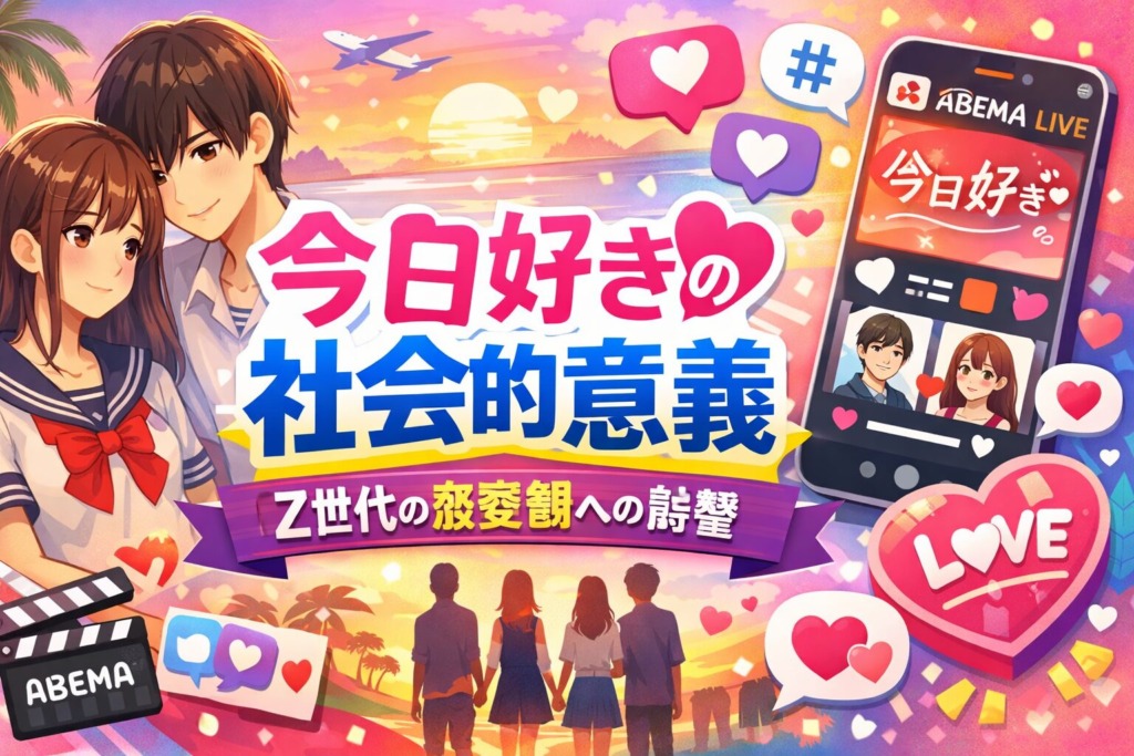 【結論:「今日好き」はZ世代の恋愛観を映し出し、形づくる社会的コンテンツ】「今日好き」は、ABEMAで毎週月曜よる9時に無料放送されている高校生向け恋愛リアリティショーです。2025年には全シリーズの中で週間視聴者数の最高記録を更新し、ABEMA開局以... -