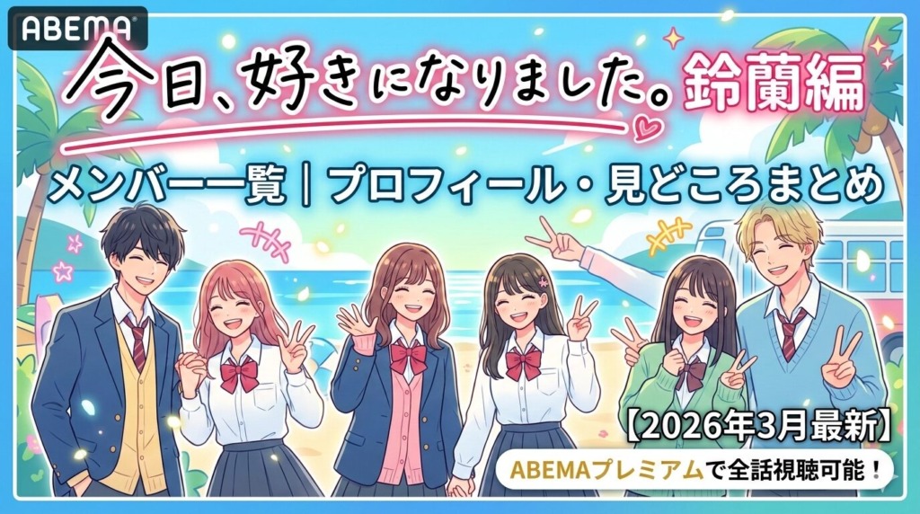 【今日好き鈴蘭編のメンバー一覧|プロフィール・見どころまとめ【2026年3月最新】】「今日、好きになりました。鈴蘭編」は、2021年5月に配信されたシリーズ第35弾です。卒業編2021からの継続メンバー2名を含む男女9名が、2泊3日の恋の修学旅行に挑みまし... -