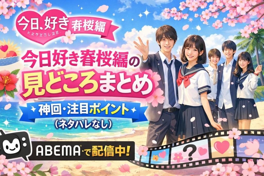 【今日好き春桜編の見どころまとめ|神回・注目ポイント(ネタバレなし)】「今日、好きになりました。春桜編」は、全員新メンバーで始まるフレッシュな恋模様が最大の魅力。沖縄を舞台に、個性豊かな男女9人が繰り広げる青春ラブストーリーは、最終話まで... -