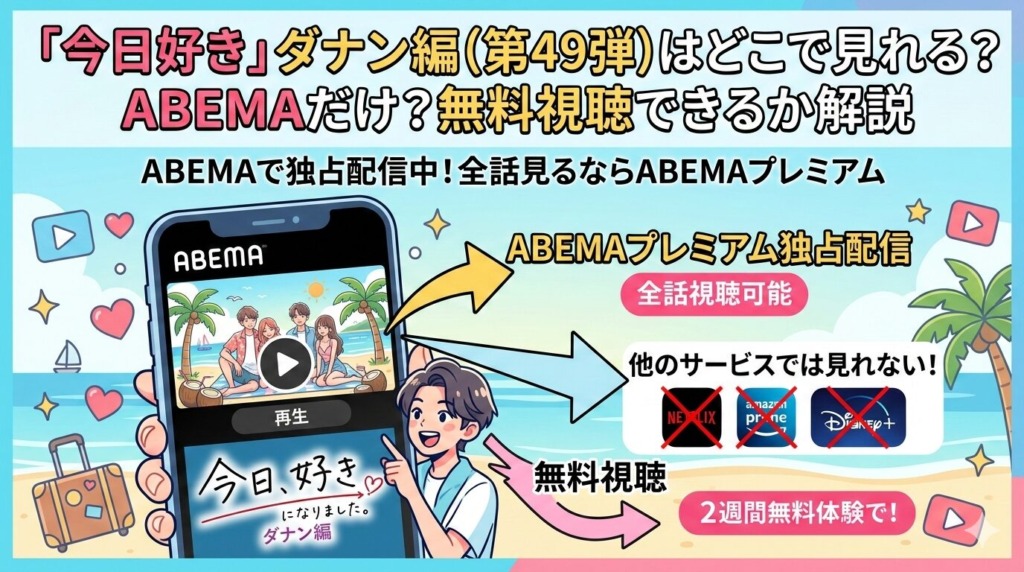 今日好きダナン編(第49弾)はどこで見れる?ABEMAだけ?無料視聴できるか解説