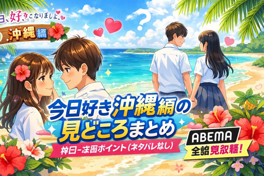 【今日好き沖縄編の見どころまとめ|神回・注目ポイント(ネタバレなし)】「今日、好きになりました。沖縄編」(第48弾)は、沖縄・石垣島の美しいロケーションを舞台に、男女10人の高校生がリアルな恋模様を繰り広げる人気シリーズです。継続メンバー3人... -