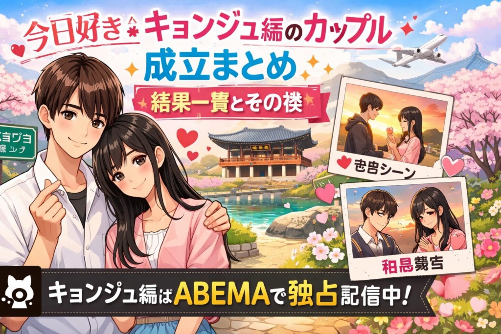 「今日好きキョンジュ編」はABEMAで独占配信中の恋愛リアリティーショーで、韓国・慶州を舞台に男女10人の高校生がリアルな恋愛模様を繰り広げます。この記事では、全メンバーのプロフィール一覧、カップル成立の結果、見どころ、そして視聴方法をまとめて... -