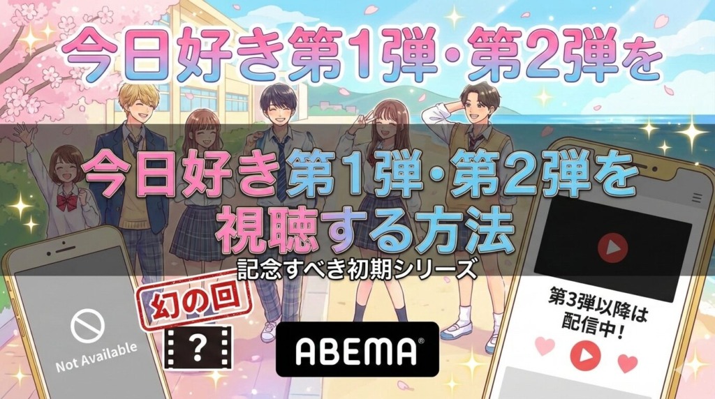「今日好き」の第1弾・第2弾が見たいのに、ABEMAで見つからない――。結論から言うと、第1弾・第2弾は現在ABEMAプレミアムに加入しても視聴できない「幻の回」です。ただし第3弾以降はABEMAプレミアムで視聴可能なので、シリーズの原点に触れたい方はまず配...