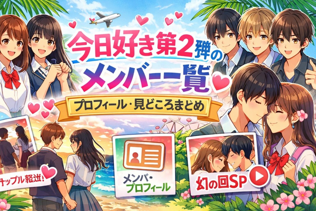 『今日、好きになりました。』(通称:今日好き)の第1弾は、2017年5月20日にAbemaTV(現ABEMA)で放送されたシリーズの原点ともいえる伝説の回です。現在は通常配信されておらず「幻の第1弾」と呼ばれています。この記事では、第1弾の全メンバーのプロフ... -