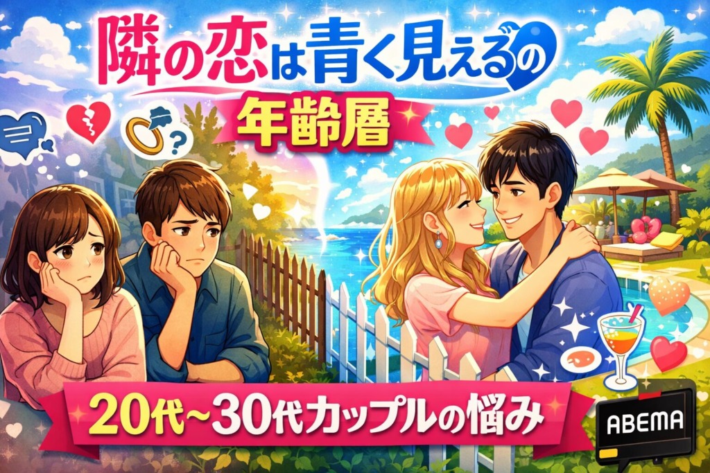 【隣の恋は青く見えるの年齢層は20代〜30代がど真ん中!カップルの悩みにリアルすぎると話題】『隣の恋は青く見える』は、20代〜30代のカップルが抱えるリアルな恋愛の悩みを描いた恋愛リアリティーショーです。出演者も視聴者も20代〜30代が中心で、マン... -