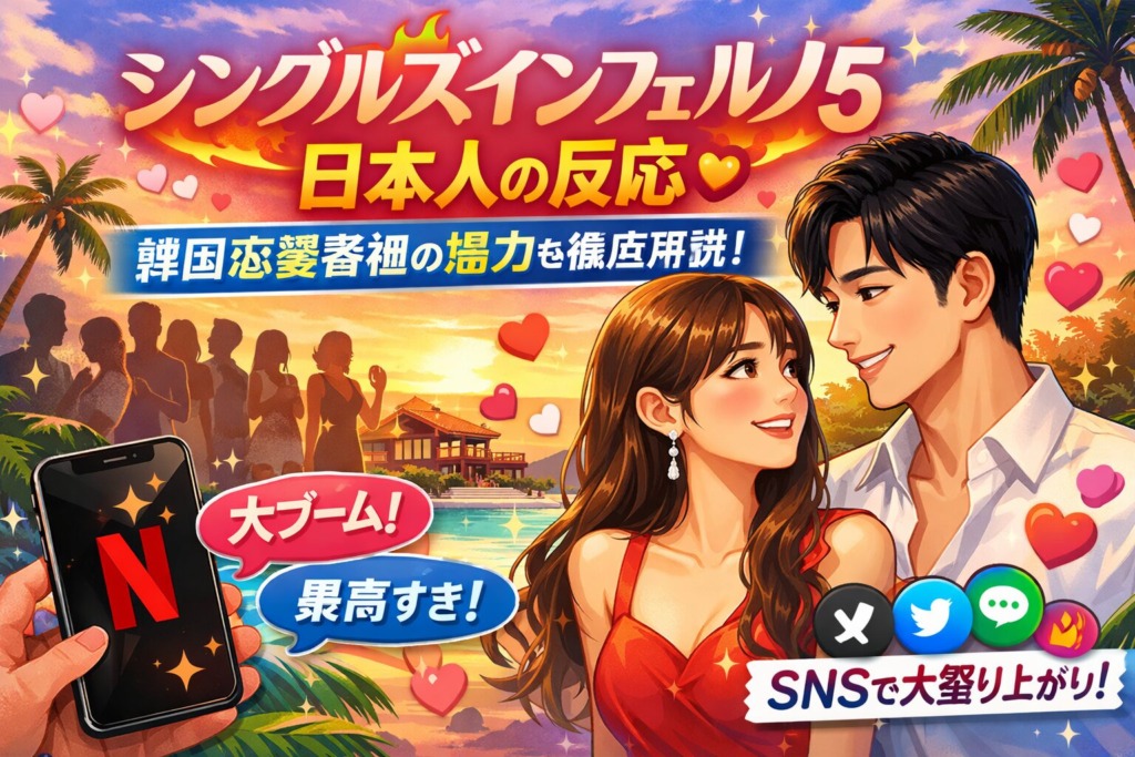 「シングルズインフェルノ5(脱出おひとり島5)」が日本でも大きな話題となっています。韓国発の恋愛リアリティ番組が、なぜこれほどまでに日本人の心をつかむのか。本記事では、日本人の反応や口コミを中心に、韓国恋愛番組の魅力を徹底的に解説していき... -