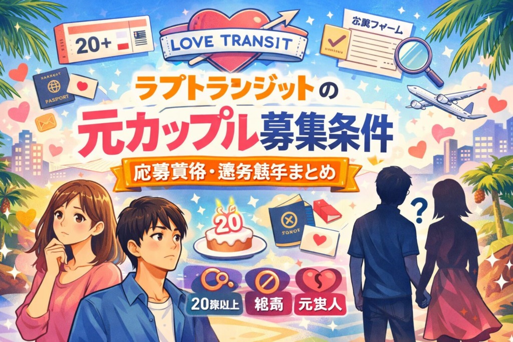 【ラブトランジットの元カップル募集条件|応募資格・選考基準まとめ【2026年最新】】「ラブトランジットに出てみたいけど、募集条件ってどうなってるの?」「元カップルじゃないと応募できないの?」そんな疑問を持つ方に向けて、本記事ではラブトランジ... -