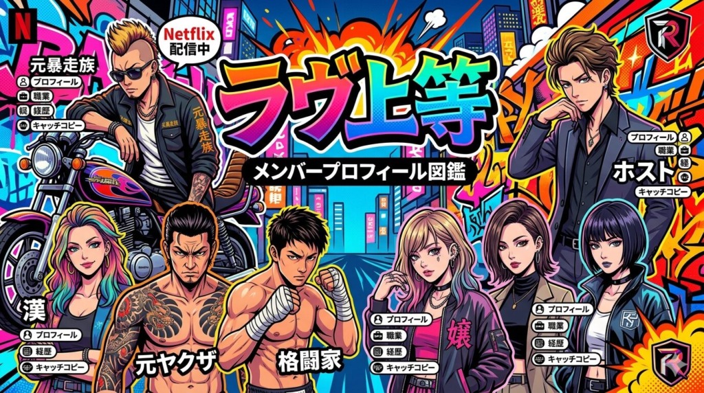 「ラヴ上等」は、元暴走族総長・元ヤクザ・格闘家・ホストなど、強烈な経歴を持つヤンキー男女11人が14日間の共同生活を送る新感覚の恋愛リアリティショーです。この記事では、「漢」6人・「嬢」5人の全メンバーのプロフィール・職業・経歴・キャッチコピ... -