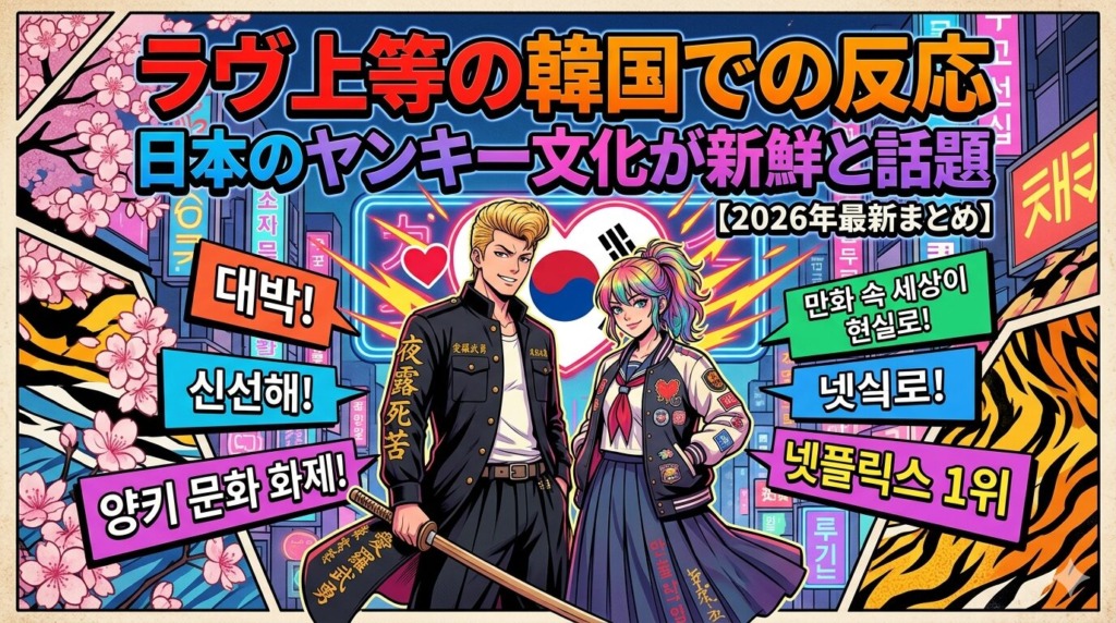 【ラヴ上等の韓国での反応|日本のヤンキー文化が新鮮と話題【2026年最新まとめ】】『ラヴ上等』は韓国で爆発的に話題となり、「日本のヤンキー文化が新鮮すぎる」「漫画の世界がリアルに存在していた」と大きな反響を呼んでいます。本記事では、韓国での... -