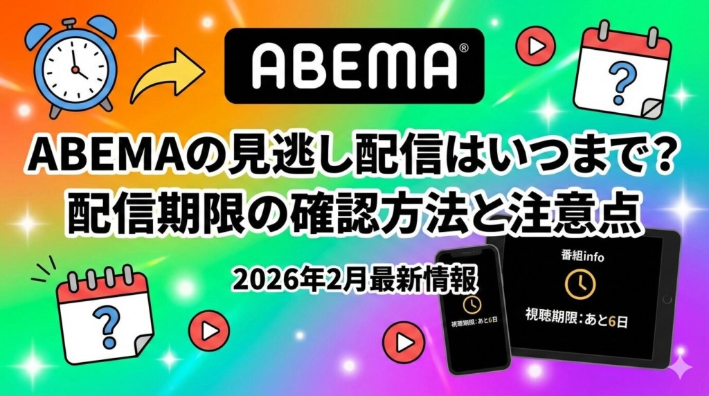 ABEMAの見逃し配信(見逃し視聴)は番組ごとに視聴期限が異なり、一律の日数は決まっていません。おおむね放送終了後3〜7日間が目安ですが、番組によっては30日以上視聴可能なケースもあります。この記事では、視聴期限の具体的な確認手順から、見逃し配信... -