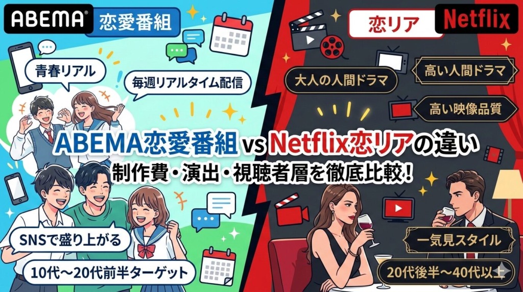 ABEMA恋愛番組vsNetflix恋リアの違い|制作費・演出・視聴者層を徹底比較
