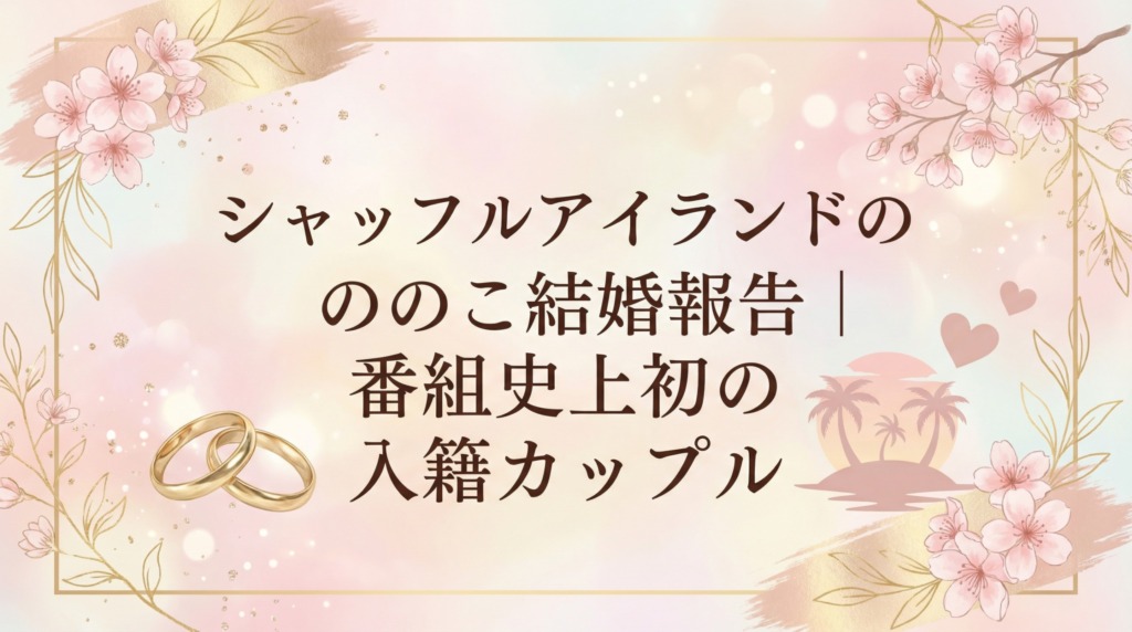 【シャッフルアイランドのののこが結婚報告!番組出身者の入籍まとめと視聴方法を徹底解説】2026年3月1日、シャッフルアイランドシーズン4に出演したモデル兼ピラティス講師の「ののこ」こと高橋野乃子さん(28)が、自身のインスタグラムで結婚を発表しま... -