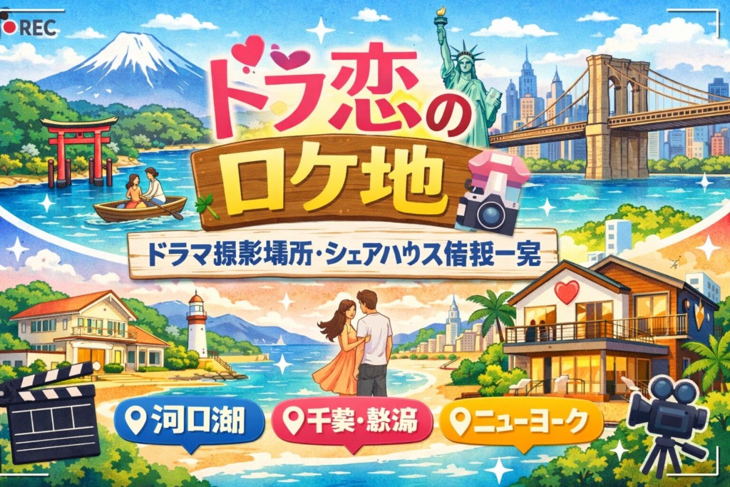 【ドラ恋のロケ地はどこ?シーズン別の撮影場所・シェアハウス情報を一覧で徹底紹介】「恋愛ドラマな恋がしたい」(通称:ドラ恋)のロケ地は、山梨県河口湖エリアや千葉県富津市、さらにはニューヨークまで、シーズンごとにさまざまな場所で撮影が行われ... -