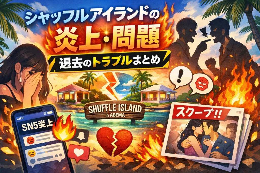 【シャッフルアイランドの炎上・問題|過去のトラブルまとめ【シーズン1〜6完全版】】「シャッフルアイランド」はABEMAの人気恋愛リアリティーショーですが、歴代シーズンで数々の炎上・トラブルが話題になってきました。この記事では、シーズン1からシー...