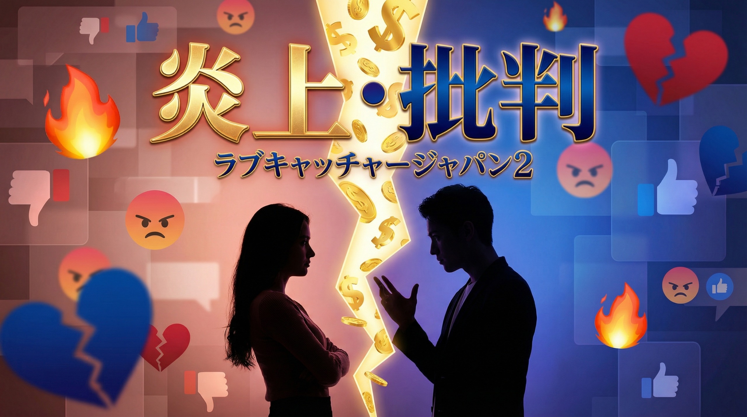 「ラブキャッチャージャパン2」は、賞金1000万円をめぐる駆け引きと恋愛感情の交錯が話題を呼びましたが、同時に「金銭目的の恋愛」に対する批判や出演者の行動をめぐる炎上が相次ぎました。この記事では、番組内で起きた炎上騒動と視聴者のリアルな反応を徹底的にまとめています。