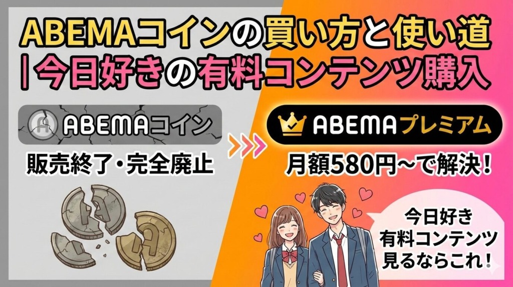 「ABEMAコインってどうやって買うの?」「今日好きの有料コンテンツを見るにはコインが必要?」と気になっている方へ、結論からお伝えします。ABEMAコインは2023年6月15日に販売終了・完全廃止されており、現在は購入も使用もできません。今日好きの過去シ... -