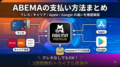 ABEMAプレミアムの支払い方法は、クレジットカード、キャリア決済、App Store決済、Google Play決済、Amazonアプリ内決済の5種類から選べます。クレジットカードを持っていない方でも、キャリア決済やギフトカードを使ったアプリ内課金で登録が可能です。この記事では、各支払い方法の特徴や違い、端末別の対応状況、支払い変更時の注意点までを詳しく解説します。
