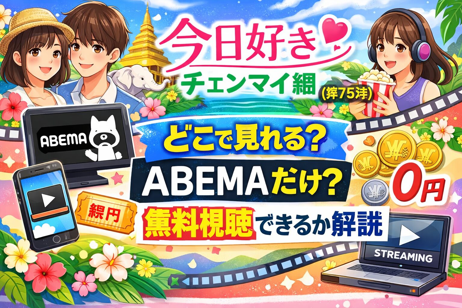 今日好き初虹編はABEMAで配信されています。過去シーズンのアーカイブを全話視聴するにはABEMAプレミアム(月額960円・税込)への加入が必要です。初回は2週間の無料体験が利用できるので、まずはお試しで視聴してみることをおすすめします。