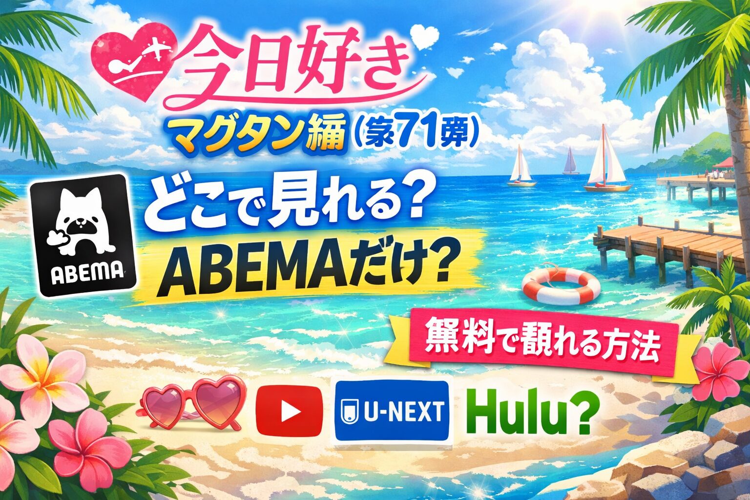 「今日好き皐月編(第44弾)」を見たいけど、どこで配信してるの?と気になっている方へ。結論から言うと、皐月編はABEMAの独占配信作品です。ABEMAプレミアムに登録すれば全話見放題で視聴でき、初回なら2週間の無料体験が使えるので、実質タダで全エピソード楽しめます。
