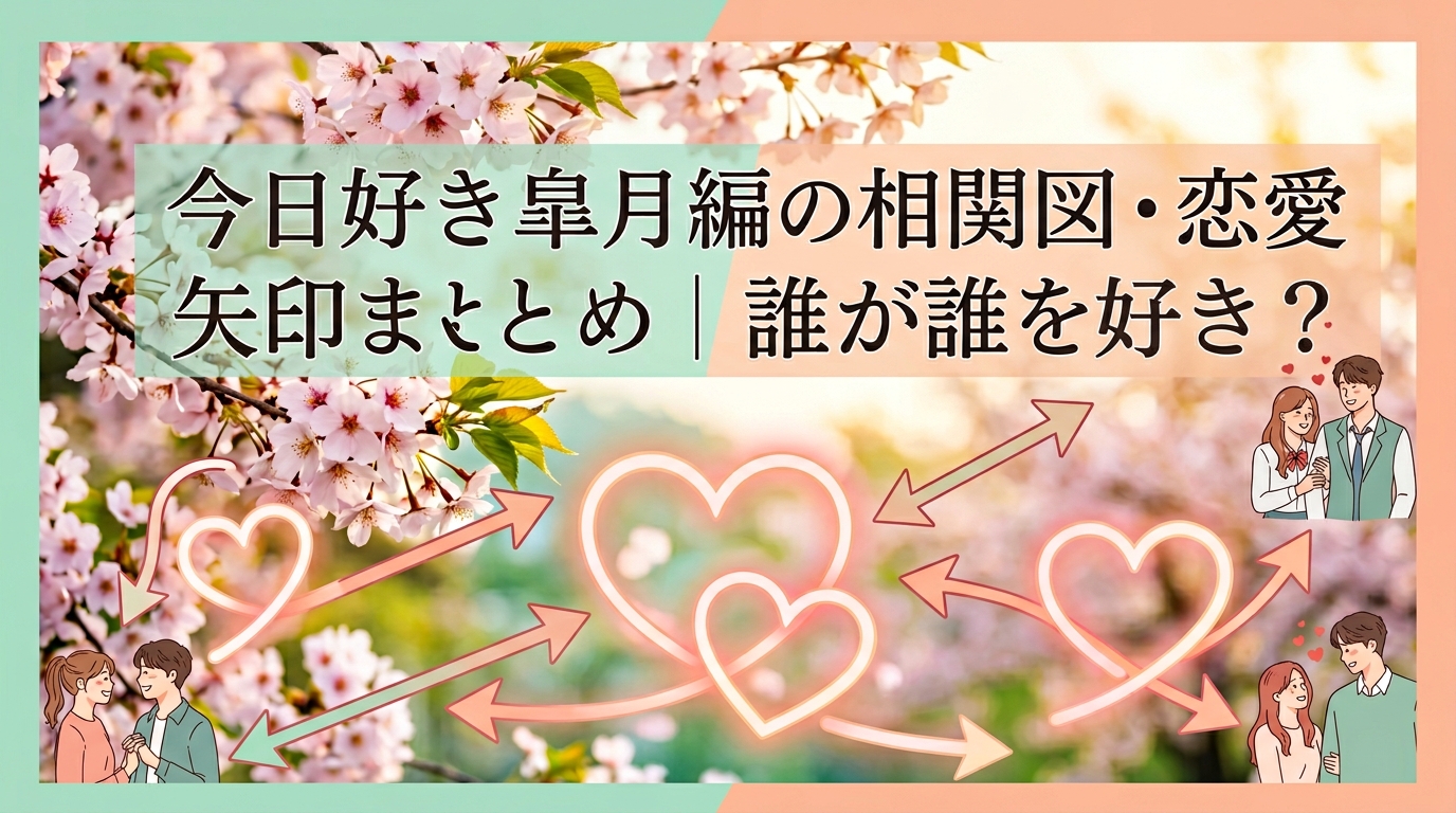 「今日、好きになりました。皐月編」(第44弾)の相関図と恋愛矢印を全話にわたって徹底まとめしました。りんのすけを中心とした三角関係や、もえを巡る男子2人の攻防など、皐月編は見どころ満載のシーズンです。最終的に2組のカップルが成立した皐月編の恋愛模様を、わかりやすく解説します。