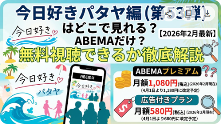 「今日好き」の第1弾・第2弾が見たいのに、ABEMAで見つからない――。結論から言うと、第1弾・第2弾は現在ABEMAプレミアムに加入しても視聴できない「幻の回」です。ただし第3弾以降はABEMAプレミアムで視聴可能なので、シリーズの原点に触れたい方はまず配信中の初期シリーズからチェックしましょう。